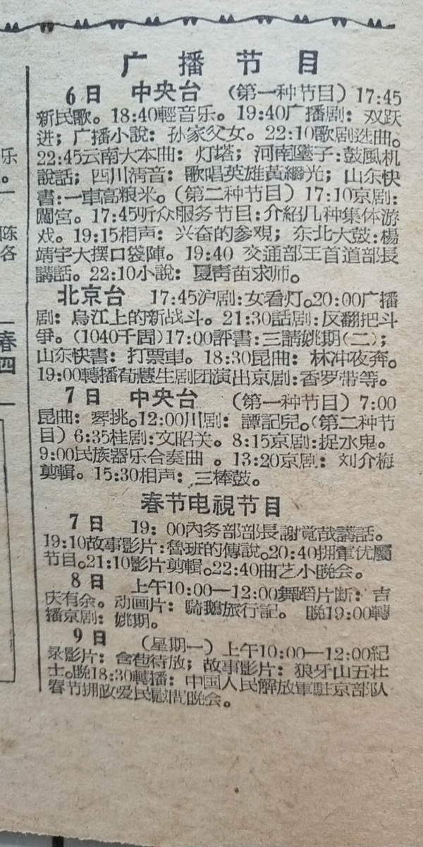 1959年2月7日《新民晚報》上的電視預告那麼1959年的除夕夜裏,誕生於1958年5月1日的中國第一家電視台北京電視台又有哪些節目呢?