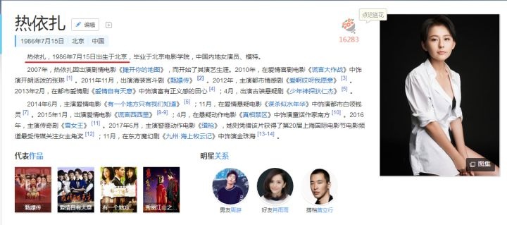 我之前不知道有熱依扎這個演員,聽網友説她是哈薩克族,我以為她是在新疆出生長大的,百度搜了一下才知道,她是在北京出生的: