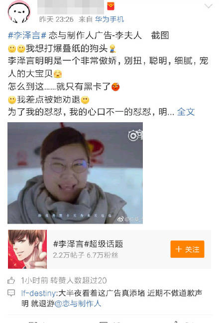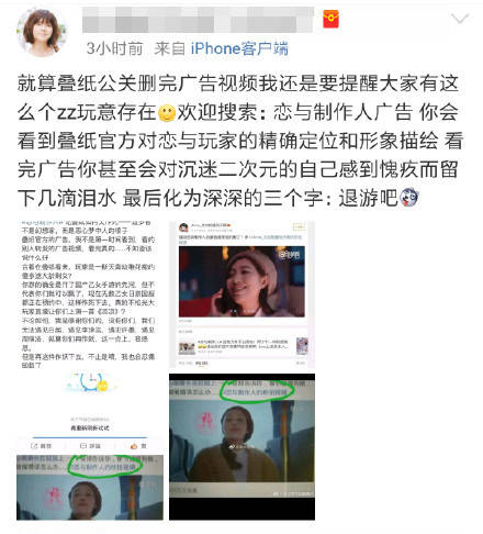 很快,《戀與製作人》官方出來道歉了,稱已緊急下架了這則廣告: