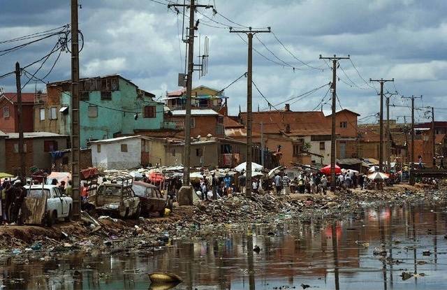 與莫桑比克隔海相望的馬達加斯加情況同樣不容樂觀。安其貝拉(Antsirabe),是馬達加斯加的第三大城市,但卻完全看不到城市的影子,垃圾和污水填滿了整個城鎮。