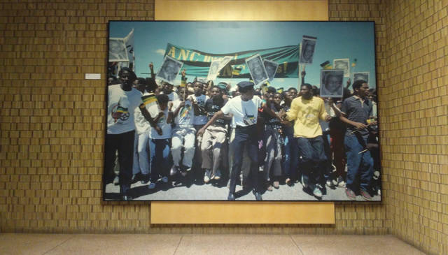 題圖為比勒陀利亞大學文科樓內的一張照片,照片記錄的是1990年代的非國大示威活動,標誌性的跳躍遊行,橫幅上“ANC”是“非國大”。本文圖片除另行説明,皆由蔣亦凡拍攝。