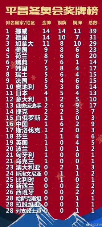在本屆冬奧會上,中國體育代表團共獲得1金6銀2銅。與上屆索契冬奧會相比,金牌數少了兩枚,獎牌數持平。據中新網報道,中國體育代表團副團長高志丹2月24日表示,雖然金牌數有遺憾,但總體來説,運動隊基本實現了賽前確定的目標,遺憾也説明了差距的存在。