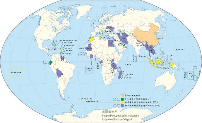 對華免籤國家分佈圖(圖源:博客/地圖看世界山寨版)