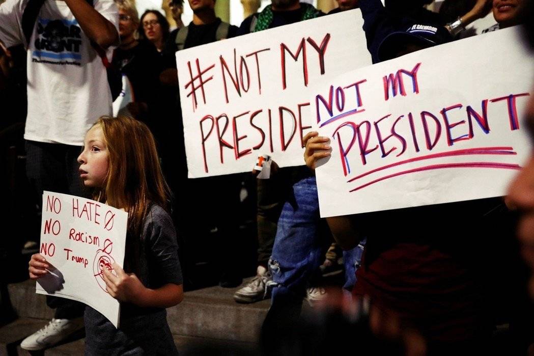 2016年總統大選,民主黨候選人希拉里拿下灣岸都會區選票,以6成普選票拿下所有選舉人票,但內陸地區則全由特朗普囊括,更凸顯加州地方政治的極度地域分裂性。圖為選舉過後,上街抗議特朗普的民主黨支持者。 圖/路透社