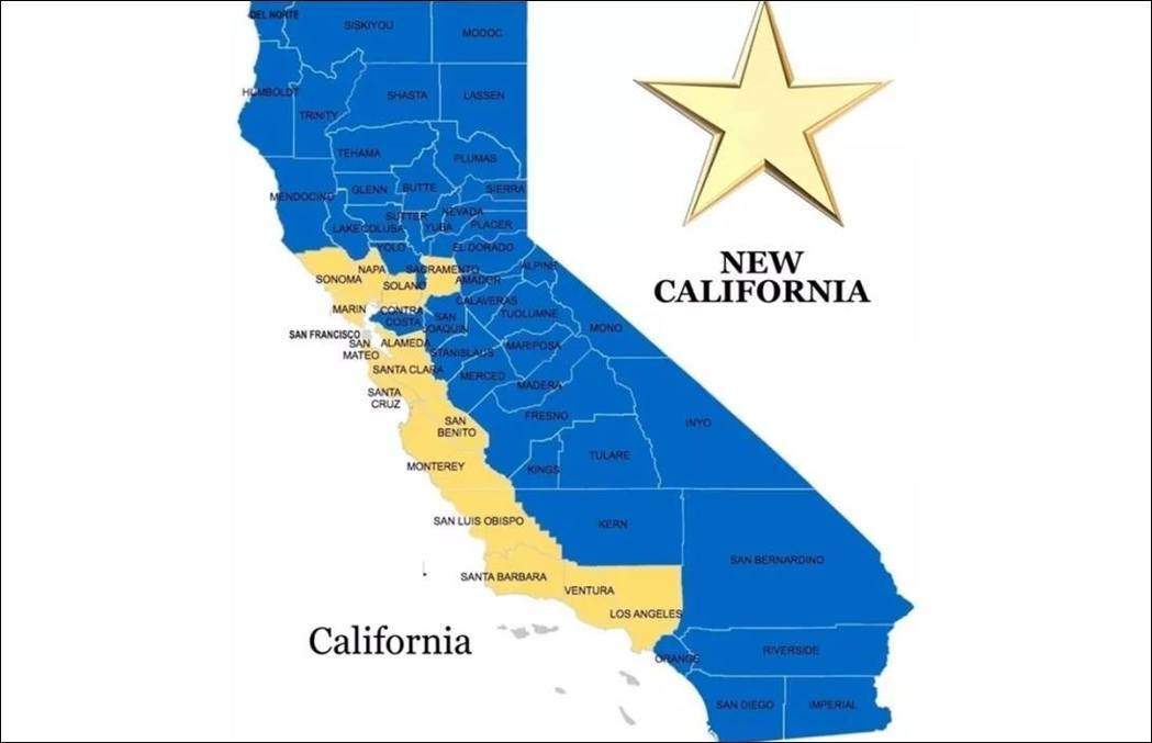 “新加州”獨立運動興起於2016年,但直到2017年初,官方在網絡上正式發表獨立宣言,效法開國先賢以反抗暴政作為號召後,才引起注意。“新加州”獨立運動主張將加州一分為二,舊金山及洛杉磯灣區以外的加州東部大片內陸區域,應該獨立成為“新加州”。如果成功,這個美國第51州將成為全美第6大州,人口數超越紐約州。截至2018年1月20日,“新加州”獨立運動官方宣佈已有29個郡獲認證加入這項運動。
