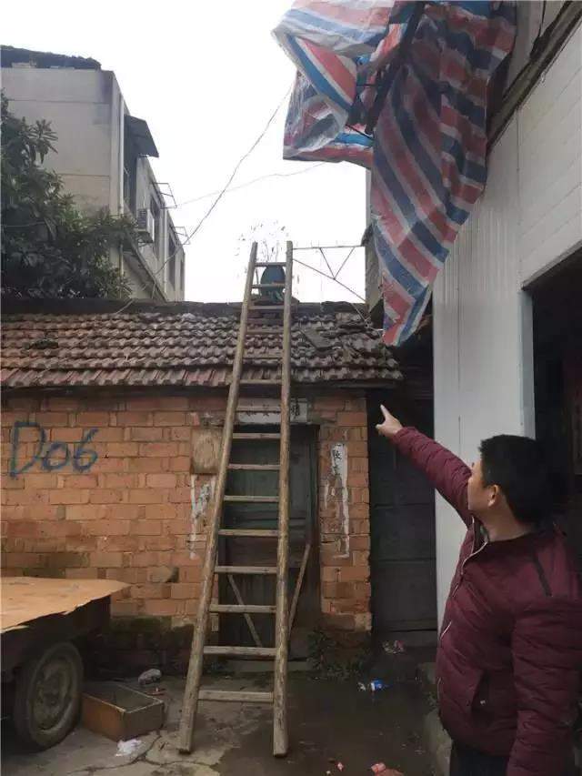 “我正準備出攤賣菜呢,聽到有人喊救命”,隔壁樓裏以賣菜為生的61歲大爺鄧春福聽到呼救聲,一人扛起幾十斤重的木梯,架在隔壁平房的樓頂,打通了連接被困者所在。