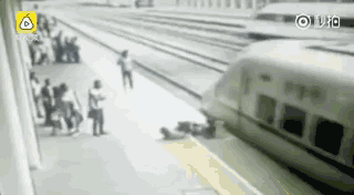 福建莆田一動車站台上,動車正呼嘯着進站,一女子突然朝黃線內跑,想跳軌自殺。