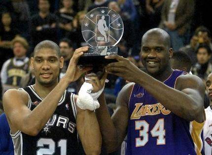 2000年NBA全明星賽,鄧肯和奧尼爾同時被評為MVP