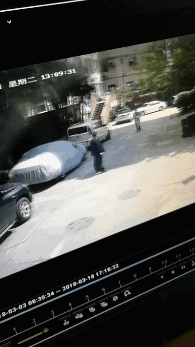▲監控視頻顯示當天有男子追着“萌萌”上樓