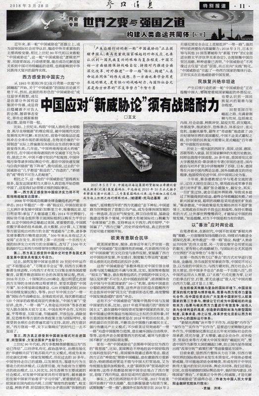 產生後續行動的新一輪“中國威脅論”正在提醒中國人,要高度重視國家崛起的外部反應,也要認識到一國民族復興的艱難度與複雜度。