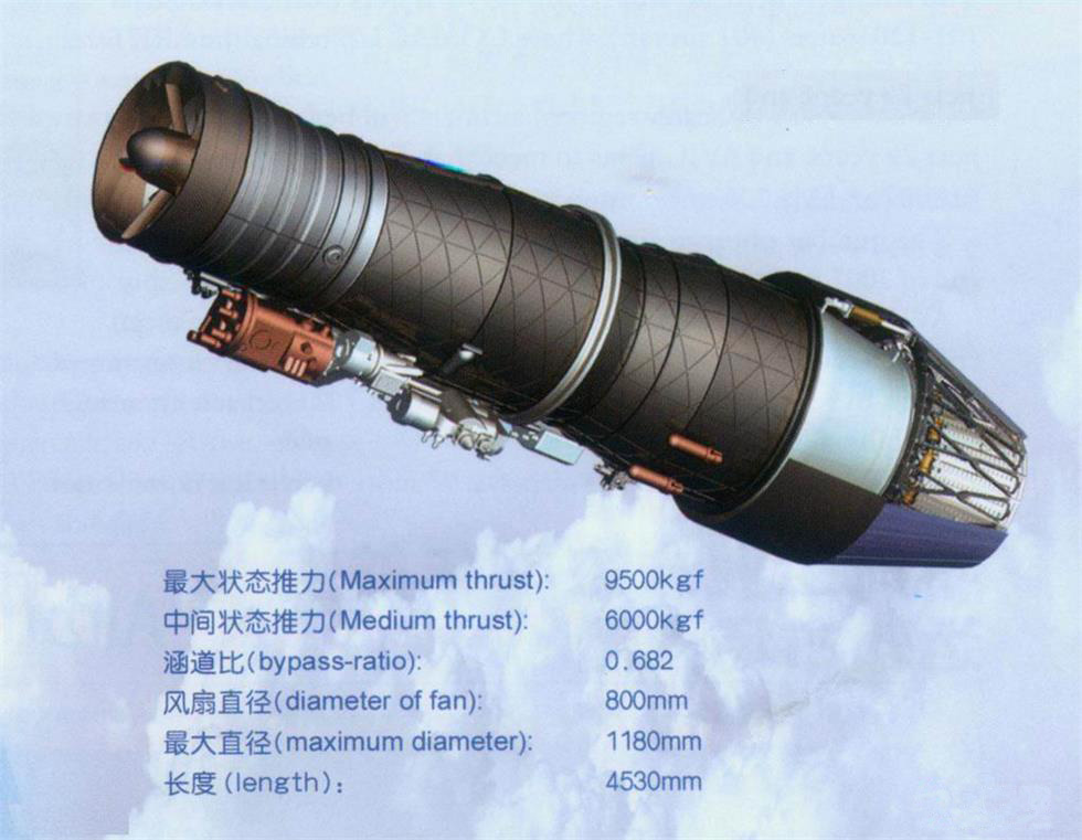 圖17:WS-13E泰山,最大推力9.5噸的,推重比8.6,這兩個性能指標都還好。但可惜涵道比高達0.682,長度更是達到驚人的4530mm,是款典型的第三代中推。FC-31要想成為真正的四代機,用它是不行的