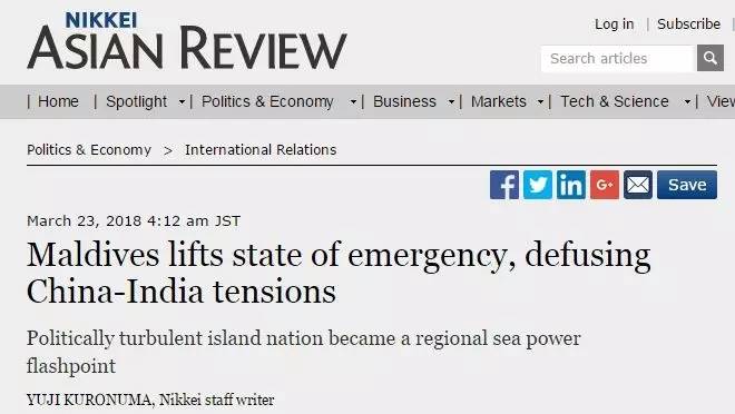這篇《日本經濟新聞》發佈於3月23日的報道,其實從文章開頭就已經開始頗具傾向性地把中國隱晦地描述成了破壞印度洋穩定的帝國主義者,説馬爾代夫國內緊張的政治局勢令中國開始借勢對印度發難,好爭奪對於這一地區的控制權。