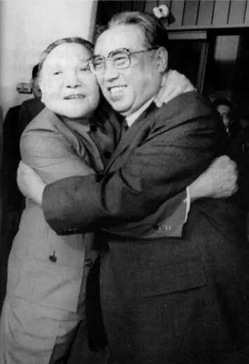 1982年,鄧小平與來訪的金日成熱烈擁抱。