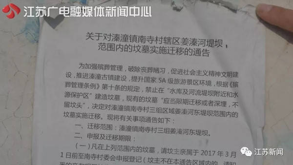 為此高女士和家人也多次向有關部門進行反映,在去年1月份,溱潼鎮政府和姜堰區民政局專門下發公告,要求墳主親屬在2017年5月1號前將墳墓遷移或就地平墳,但到目前為止只有兩户人家遷了墳。