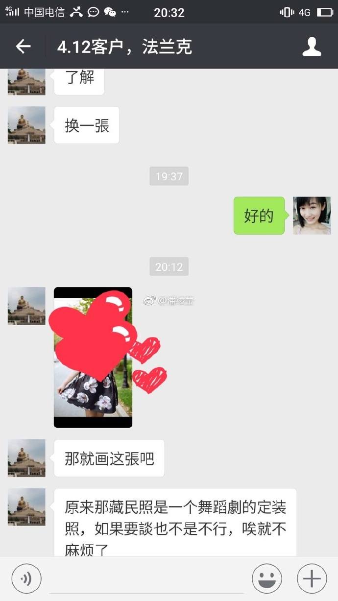 12日,潘綾瑩發微博稱自己挑好了要進行直播的畫作,是一副“複雜的古典油畫”。還曬出了客户與自己的對話截圖及收據。