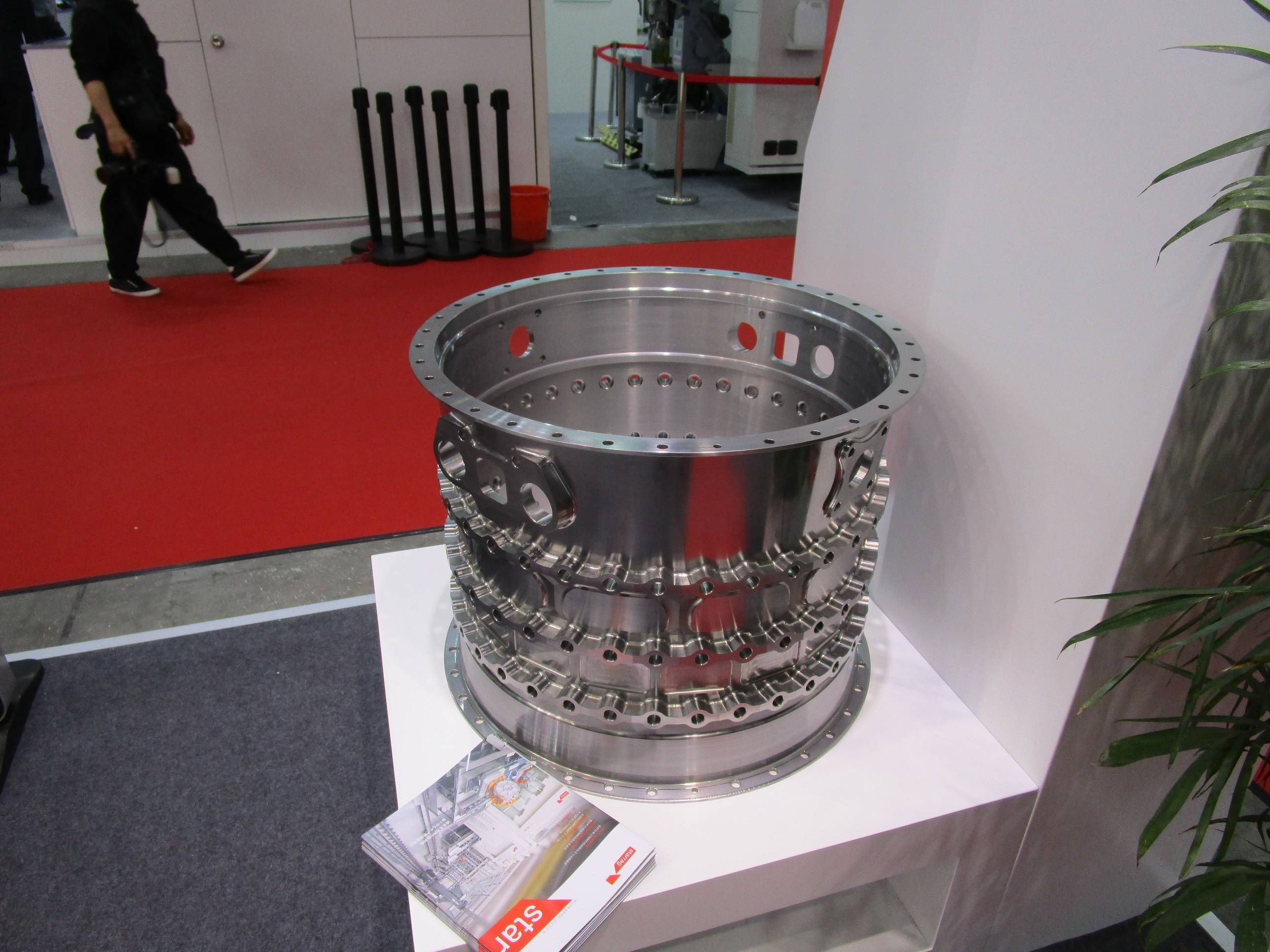 此次斯達拉格也帶來了不少透平式動力機械零部件參展。比如下面的整體葉盤(材料應該是高温合金)就是NB系列加工中心製造的,注意葉片上細膩的刀紋。