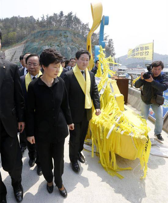 朴槿惠哀悼世越號遇難者 有調查官員説,“減搖鰭被撞的話,很可能是來自水中的物體,並且與世越號方向相同,速度很快。可能是潛艇。”