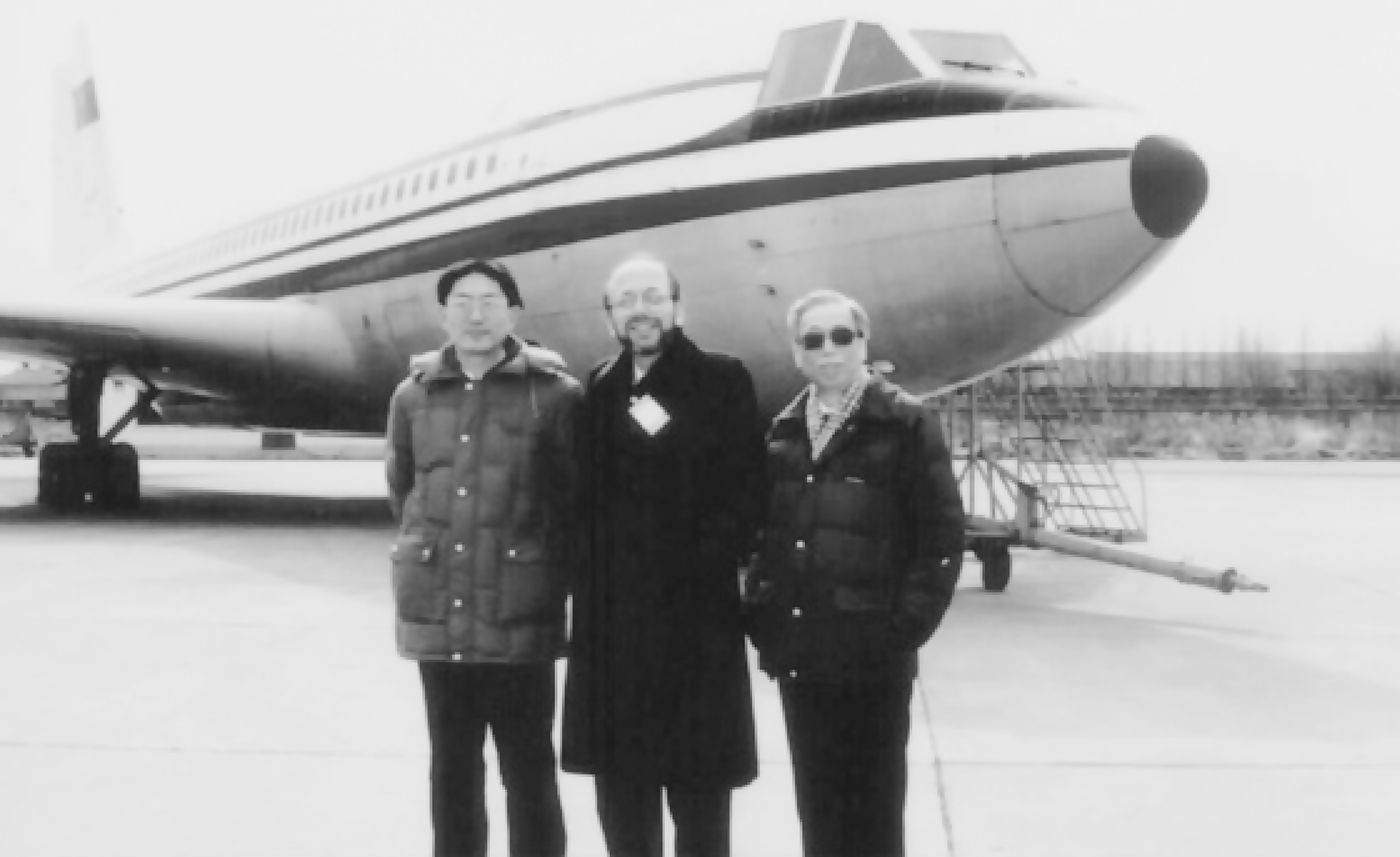 1988年,運-10總設計師馬鳳山(右一)接待來訪外賓
