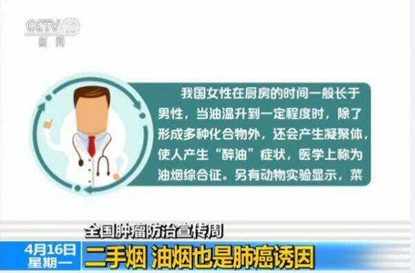 中國抗癌協會臨牀腫瘤學協作專業委員會委員王修劍:與廚房的排煙灶有一定的關係,我們現在有的家庭排煙灶比較高檔一點,有的家庭排煙灶根本排不出去,還有一些貧困的地方沒有排煙灶,他們雖然不吸煙,也會導致肺癌的產生,包括食物油等還有其他的問題都可以導致產生肺癌。