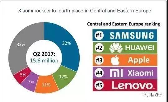 當然,中東歐的情況要好一些,根據調研機構Canalys的報告,2017年下半年,在中東歐區域市場份額前五為三星、華為、蘋果、小米和聯想,國產手機品牌佔其三。