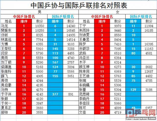 中國乒協排名綜合考量國際國內賽事成績,以此作為運動員參與各類賽事選拔和種子選手排位的重要依據。