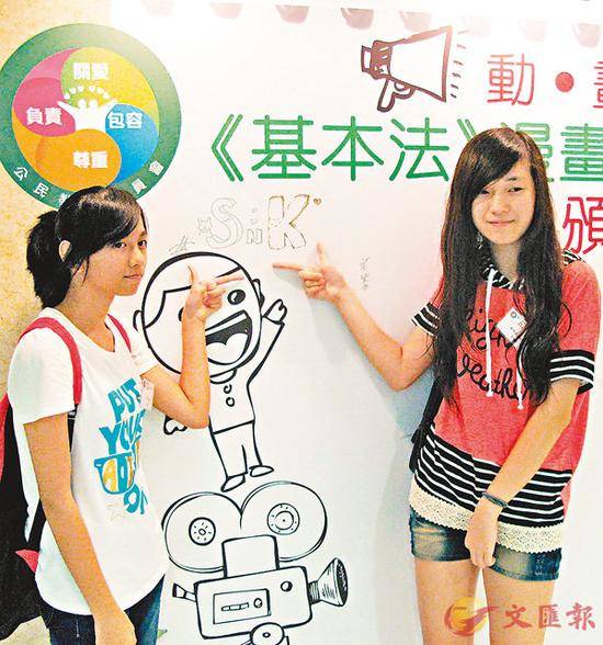 特區政府教育局17年公佈《中學教育課程指引》擬定稿,當中建議學校課程涵蓋共51小時《基本法》教育。圖為學生積極參與普及《基本法》漫畫創作比賽。(圖源:香港文匯網)