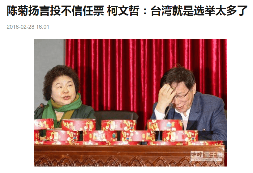 雖然自己坐上市長的位置也要歸功於民選的力量,但心直口快的柯P也從未停止過對台灣選舉的吐槽。早在去年,同樣是一次關於2018年民進黨與柯文哲台北市長選舉的“禮讓”八卦風波中,柯文哲就坦言,台灣有時候(選舉週期)才一半的時候就已經開始討論選舉,“台灣的政治都被選舉塞滿,整個當局、政黨沒辦法比較頭腦清楚、不受干擾做事。”而今年2月,綠營大佬陳菊表示對於2018年台北市長選舉,她“不會相信柯文哲”,會在民進黨內反映民意。再次被記者追問此事的柯P隨手就是一句“台灣就是選舉太多了”,還頻頻反問記者“你沒有其他問題可以問嗎?”