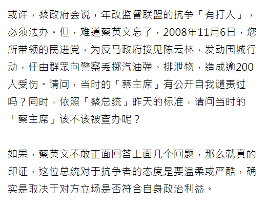我們不禁要問,蔡英文的標準到底是什麼?到底是誰“暴力”?