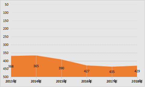 在武書連版大學排行榜中,山東工商學院的排名基本呈現階梯式下降,從2014年的峯值365名跌至429名。