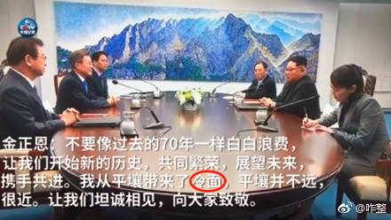 此前,韓方公佈了晚宴菜單,朝鮮冷麪這道菜是朝方應韓國總統文在寅“欽點”特意加入的。雙方溝通後,朝方同意將玉流館的首席廚師帶到板門店朝方一側的“統一閣”親手製作冷麪,並將其送至韓方一側的“和平之家”。