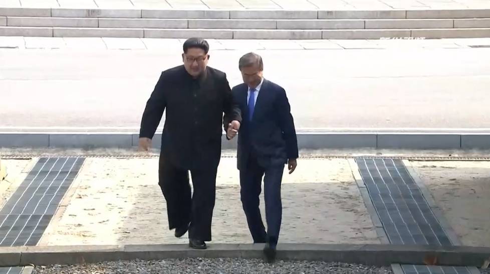 當時,金正恩跨過分界線之後,文在寅説,“您現在已經到南方來了,我什麼時候能夠去北方?”金正恩隨即回答説,要麼現在就去?所以就發生了金正恩拉着文在寅的手跨過分界線進入朝方一側短暫停留的一幕。這是歷史性的一刻,也是萬千人矚目的一刻,有多少人為了這一刻流下熱淚。‘