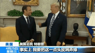 在白宮內見記者的時候,特朗普還貼心地給他“拍頭皮屑”