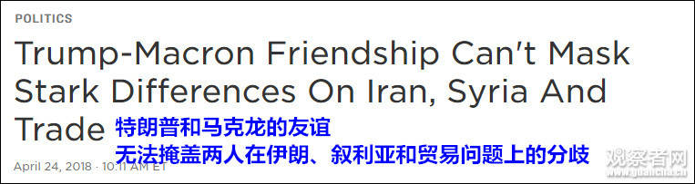 在她來之前,法國總統馬克龍剛結束為期三天的對美訪問。他的訴求也差不多是在貿易、敍內戰和伊核問題上。