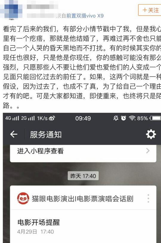 雖然在業內備受質疑,但是這部電影實打實的讓一些觀眾得到了情感共鳴,甚至淚灑影院,看完電影的男男女女開始懷念自己的前任。一起去看電影的情侶,看完之後也各懷心事。