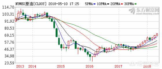 上圖是美原油價格五年來的月線走勢。可以看出2014年到2016年是一個大崩盤,2017年也繼續低迷。所以俄羅斯GDP才跌到了1.47萬億美元,還不如10年前!但是從2017年下半年開始,原油價格已經逐漸爬升到了70美元了!