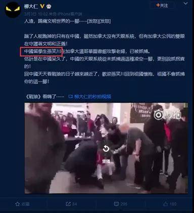 還有發生在加拿大的大學生腳踢奶奶事件,肇事人直接就變成了:中國留學生孫笑川。