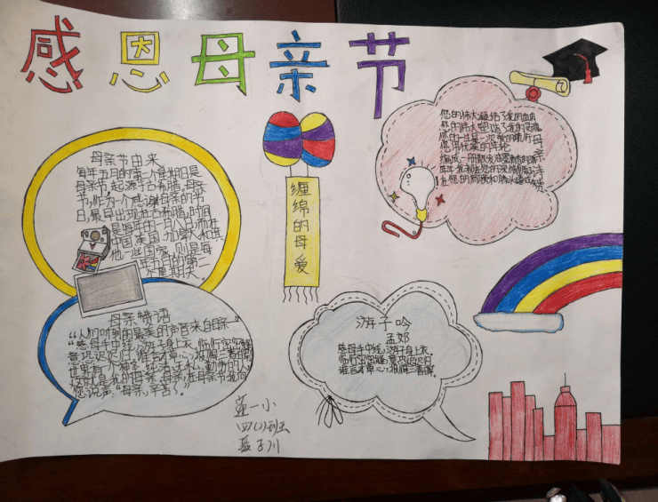 據瞭解,該學校隊員們還紛紛動手製作了感恩母親手抄報,孩子們在製作過程中體驗着濃濃的親情,激發了愛的情感,感悟在自己成長過程中媽媽所付出的艱辛和不易。老師們也是感慨,這些孩子們懂得了飲水思源,尊重、關愛媽媽,對媽媽產生了無比感激和敬仰之情。