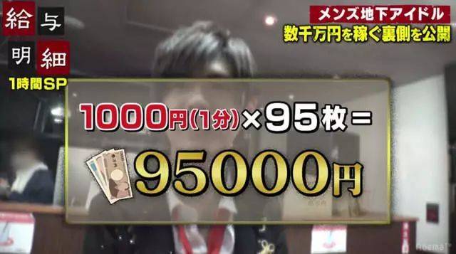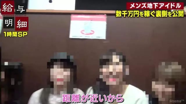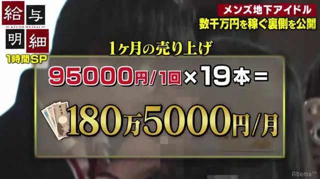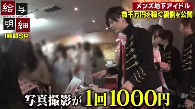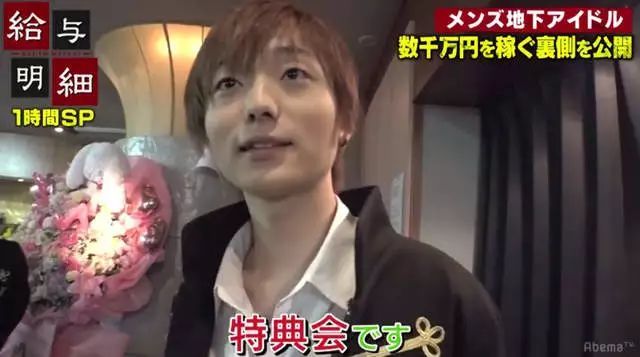 最近,日本網絡電視AbemaTV的節目《給與明細》就記錄了一羣男性地下偶像靠着與粉絲擁抱之類的親密接觸大賺一筆的整個過程,甚至有女粉絲一個月貢獻好幾十萬,僅僅為了買到幾分鐘戀愛的感覺。