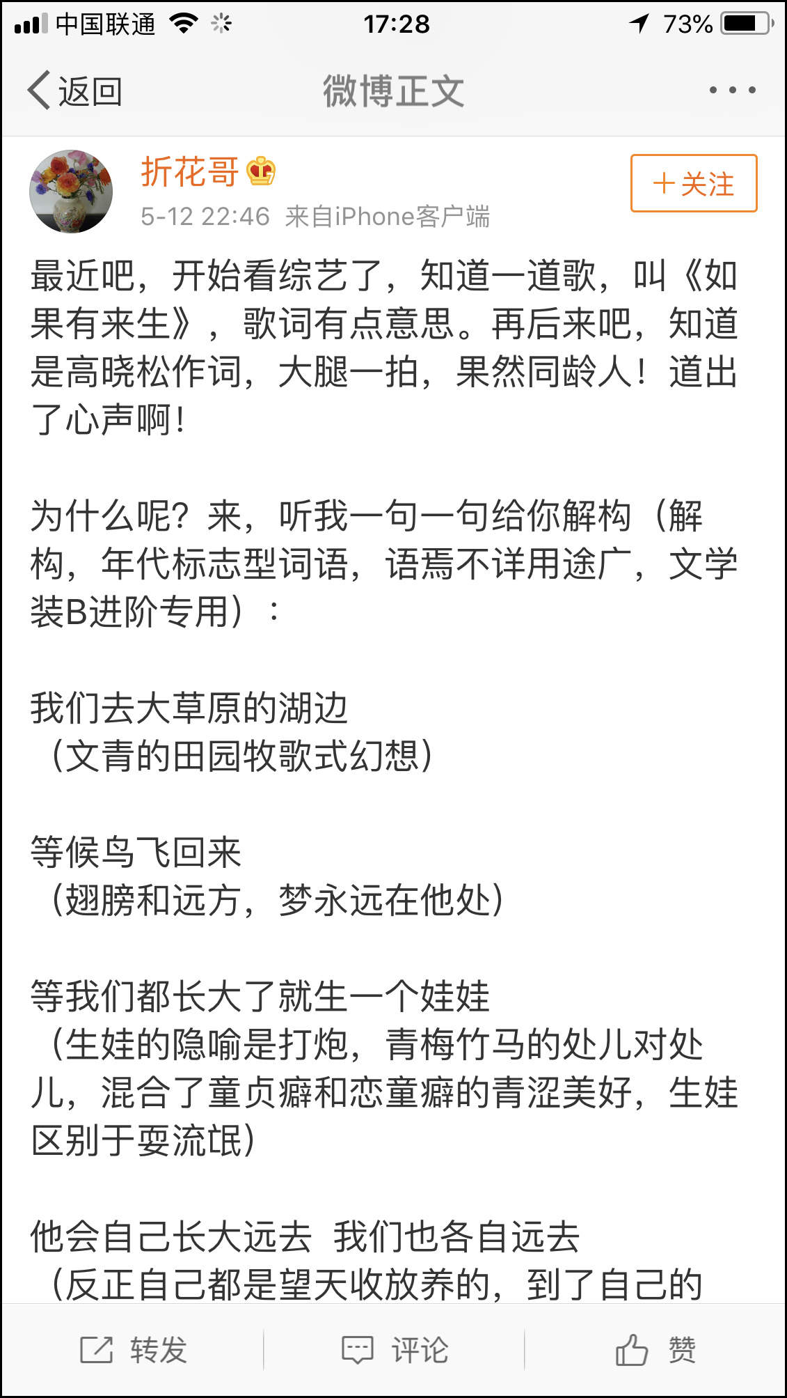 最近吧,開始看綜藝了,知道一道歌,叫《如果有來生》,歌詞有點意思。再後來吧,知道是高曉松作詞,大腿一拍,果然同齡人!道出了心聲啊!