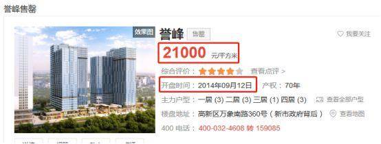 這個譽峯國際在2014年開盤就賣完了,開盤價是21000元\平方米,那麼上面網友説房價直衝四萬,看來還是比較靠譜的,畢竟連二手房都找不到一個嘛。