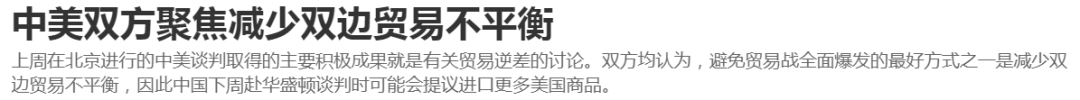 華盛頓迫切希望減少兩國貿易差額,這一點中方能理解,也願意認真對待。據知情人士説,北京談判的主要積極成果就是有關貿易逆差的討論。