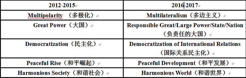 在這裏,筆者不妨沿着時間線,從2013年到2017年,列舉幾個典型概念的官方表述之演進: