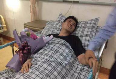 在飛機突然下墜時,餐車失控撞上乘務員周彥雯,她現在腰部還有些疼痛,只能躺着休息,從昨日送到醫院就一直躺在病牀上,同事也趕到了身邊進行照顧。