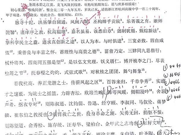 比如,説杭高推行文理並重的教育理,就是**“以弘文究理,博開桃李之門;飫義饜仁,盡表松筠之節”;説杭高師生英才輩出,就是“若我杭高,養正龍潛之士,傳薪鳳起之區”**……