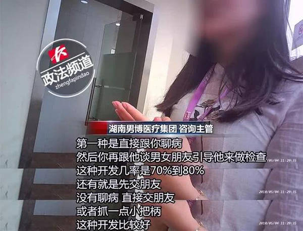 説起醫托大家應該都不陌生説的就是把病人從大醫院忽悠到小診所的騙子隨着互聯網的不斷發展醫托開始從線下轉移到線上……近日,有知情人向特攻記者舉報稱湖南男博醫療集團僱傭了400名網絡醫托假扮女醫生女護士以戀愛、甚至色誘的方式來招攬“患者”。