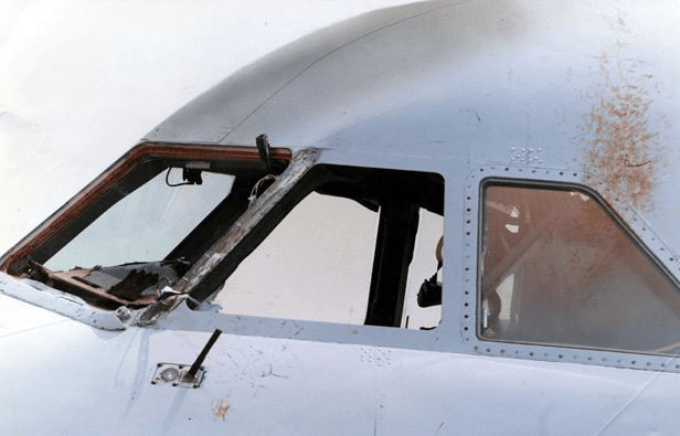 執行5390航班的BAC 1-11客機,能夠看出風擋是從外面安裝的