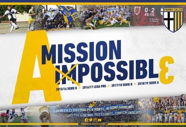 此前由於俱樂部出現了財政困難,帕爾馬在2015年被迫降至第四級別聯賽。從2015年開始,帕爾馬實現了每年一升級的壯舉,用華麗的三連跳重回意甲。帕爾馬也第一時間在官推宣佈了球隊的迴歸: