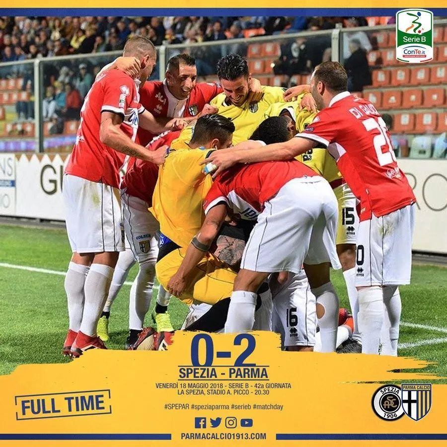 北京時間5月19日凌晨,2017/18賽季意乙聯賽結束最後一輪比賽爭奪,帕爾馬客場兩球擊敗斯佩齊亞,積分與戰平對手的弗洛西羅內持平,最終憑藉勝負關係升至積分榜第2位,從而獲得一個直接升入下賽季意甲的名額。