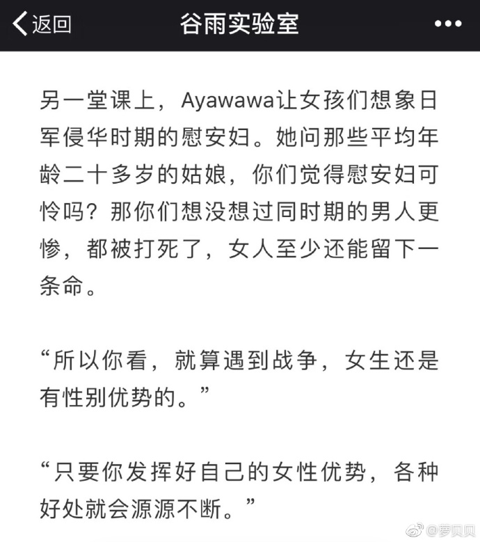 昨天,ayawawa的那段毀三觀的言論大家都看了吧,“慰安婦也沒那麼慘,至少還有條命在”。