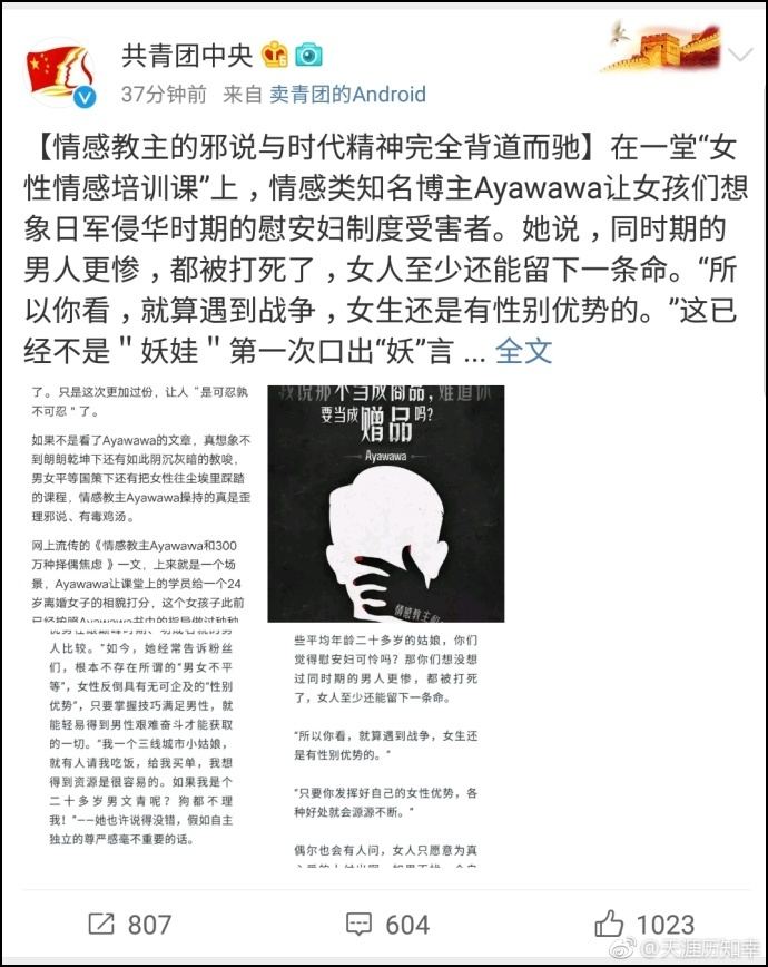 Ayawawa操持的是歪理邪説、有毒雞湯,過去大家對此就已經多有不滿,現在居然又爆出針對慰安婦羣體的不當言論,已經踩到了整個社會都在堅守的道德底線,這樣的所謂的情感博主應該被掃進歷史的垃圾堆裏。